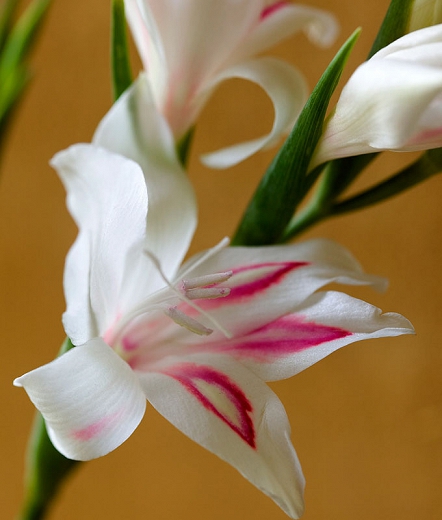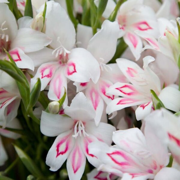 Тези гладиоли – джуджета цъфтят с изключително изящен кремаво-бял цвят, с розово петно с форма на сълза. От една луковица излизат 2-3 стъбла, а цветовете са 5-6 отворени. Много подходящи за рязан цвят. Височина 60-75 см.