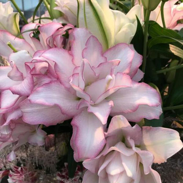 Лили Розелили Анушка (Roselily Anouska) е ориенталски хибрид. Този сорт лилии съчетава най-доброто от достойнствата на ориенталските лилии, а именно: големи кичести цветя (15-20 см) в бяло и розово цветове с гофрирани венчелистчета и силна приятна миризма. Oriental Terry Lily Roselily Изабела (Isabella Roselily) е толкова красива, че дори само едно цъфтящо цвете вече е красив букет. Височината на лилията достига 90-120 см.
