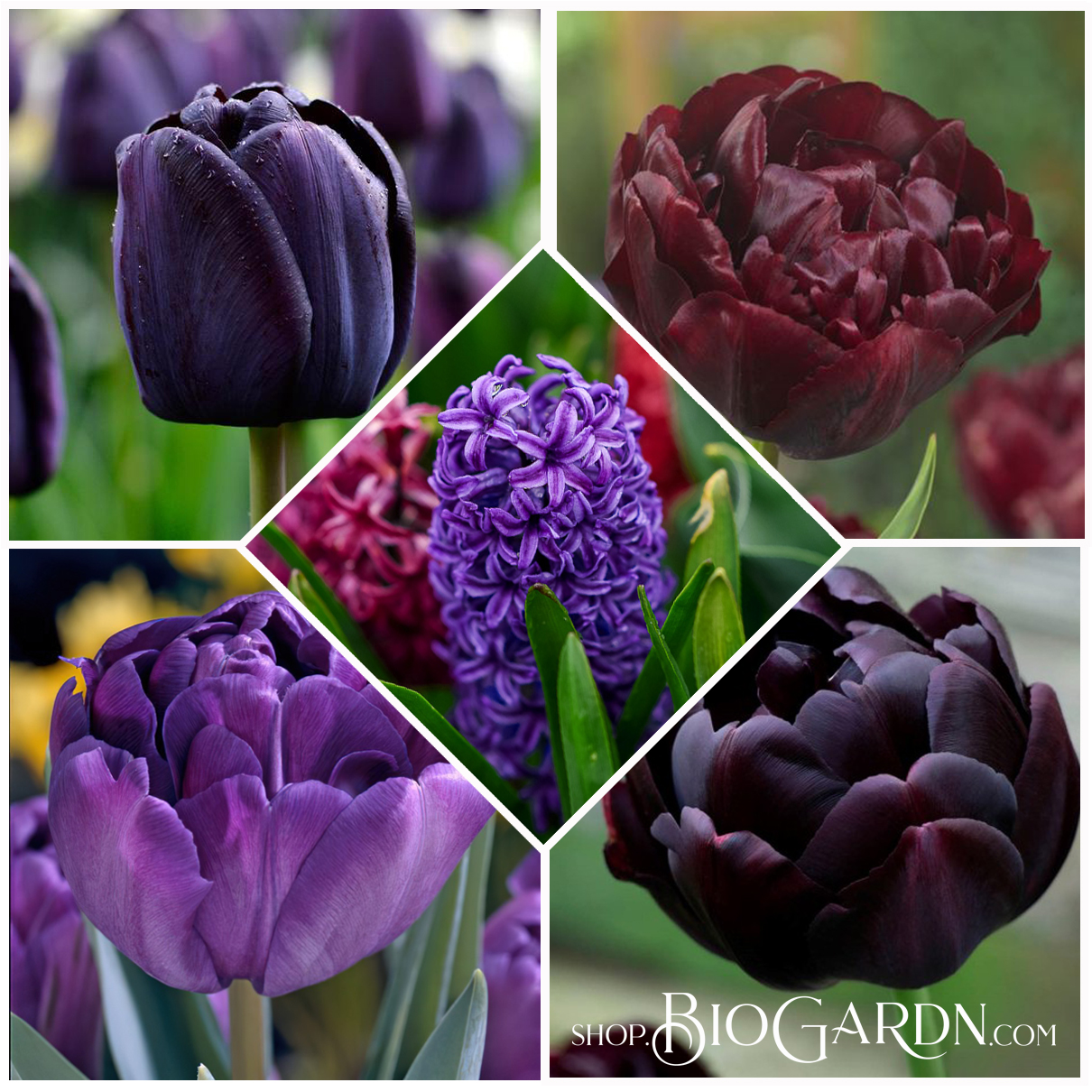 Biogardn Dark magic® ® съдържа четири сорта лалета в драматично тъмни нюанса лалета, за гарантиран изискан ефект и неподражаем стил на вашата градина!