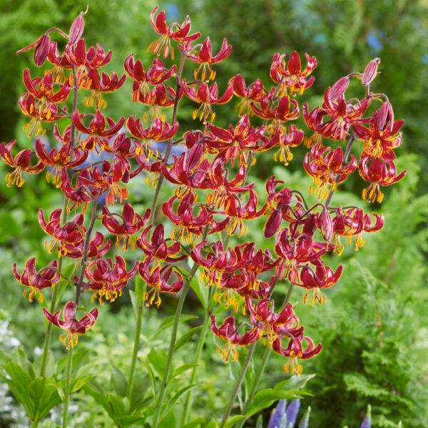 Луковица на многогодишно растение, засадена в саксия. Лесен са отглеждане, този лилиум мартагон е потресаващо красиво растение, покрито с тъмночервени цветчета, покрити с оранжеви петна. Височина 120-180 см на тънко стъбло. Той е много устойчив на болести и изисква пълно слънце или полусянка. Може би ще му потрябва една година да укрепне, но веднъж засаден, той ще цъфти в градината ви година след година.