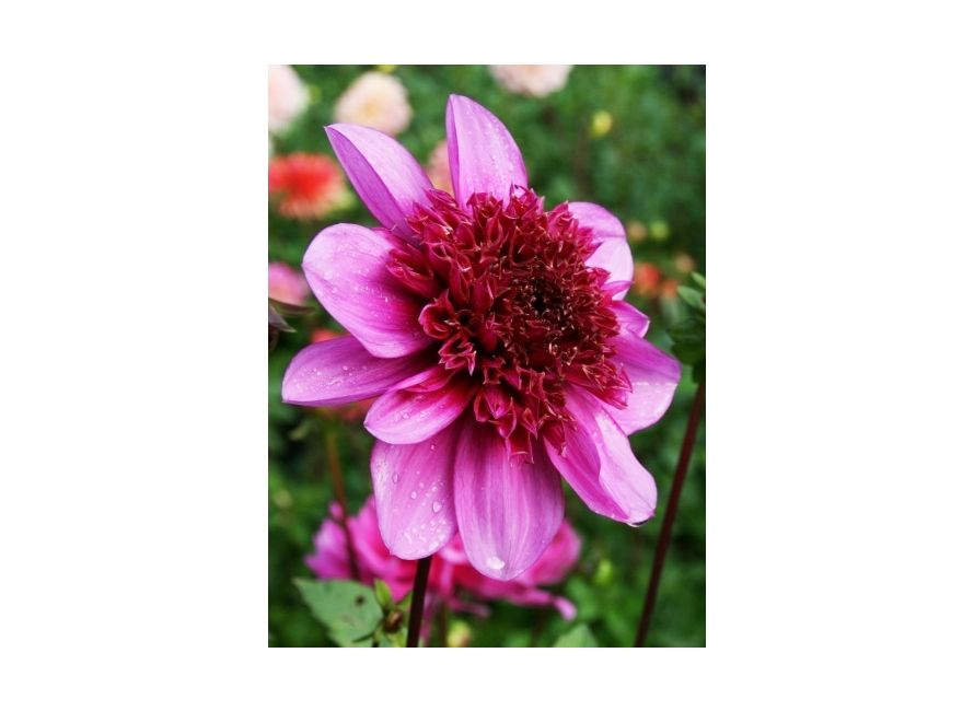 Истински красива и богата на нектар далия от група анемоне. Привлича пчели и е невероятен акцент в лятната ви градина.