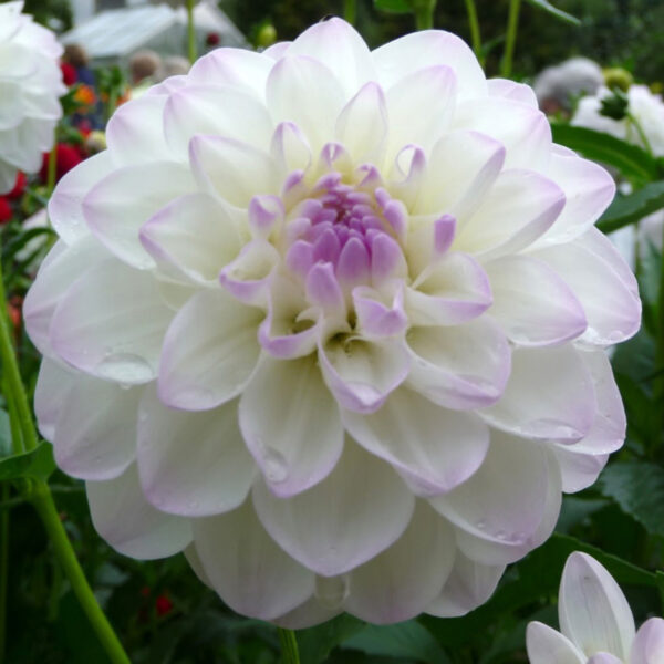 Наистина привличащ вниманието сорт, кремаво-бели, целунати с леко люляково по връхчетата на венчелистчетата. Тази елегантна декоративна далия е забележително допълнение към градината и е идеална за аранжировки, благодарение на дългото си стъбло.