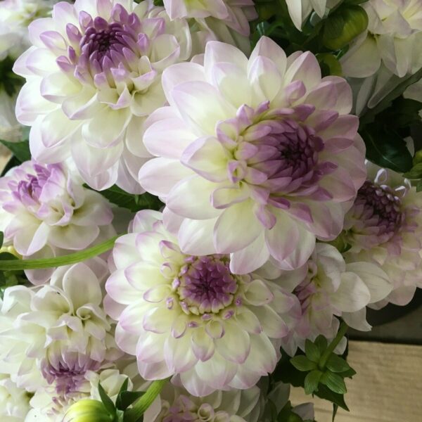 Наистина привличащ вниманието сорт, кремаво-бели, целунати с леко люляково по връхчетата на венчелистчетата. Тази елегантна декоративна далия е забележително допълнение към градината и е идеална за аранжировки, благодарение на дългото си стъбло.