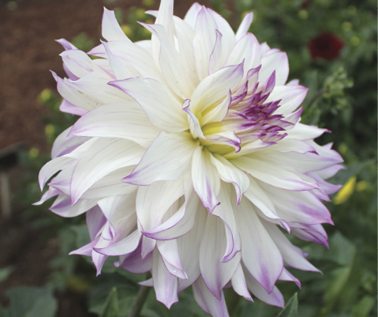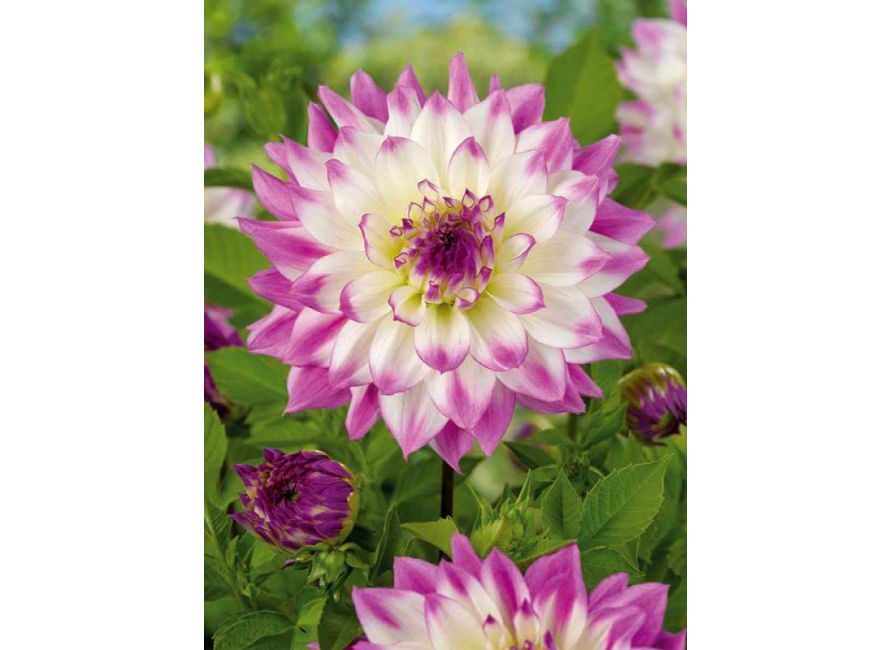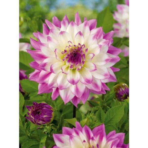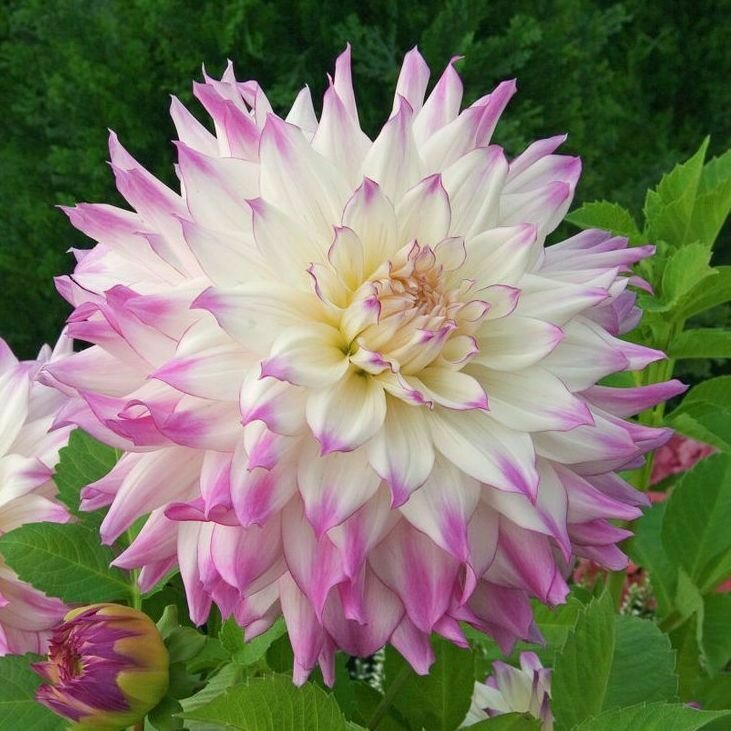 Далия „Ferncliff Illusion“ е зашеметяващ сорт, отличаващ се с огромни бели цветове, завършващи с нежно лилави ръбове. Достигат до диаметър 20-25 см, не са тежки и остават изправени, дори когато вали. Подходящи са за бордюри, както и за рязан цвят поради дългия си живот във ваза.
