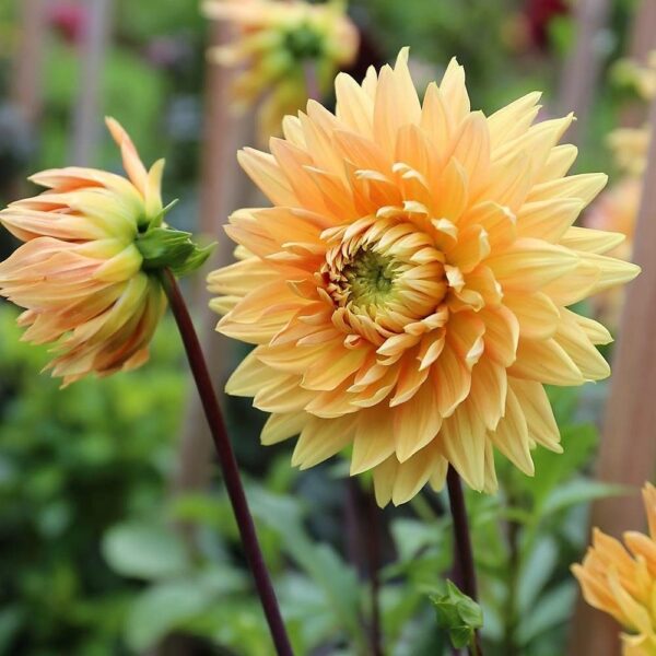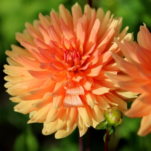 GLORIE VAN NOORDWIJK Силно декоративна гергина с висок, буен растеж и обилни, 15 сантиметрови цветя от мек бронзов портокал. Glorie Van Noordwijk има деликатен цвят, класическа форма и голям размер на цъфтежа, което го прави предпочитан в градината и за рязане. Цъфти в продължение на дълъг период от лятото до есента, като внася свеж нов цвят в градината, когато има най-голяма нужда от нея.