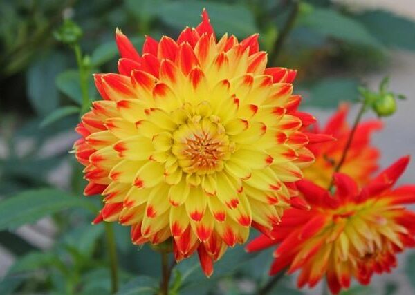 Етикети: далия, декоративна, жълта, рязан цвят, червена