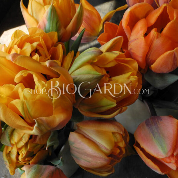 Double Late Tulip Freeman има гигантски цветни глави в красив жълт и оранжев цвят. Freeman е страхотен сорт за Великден.