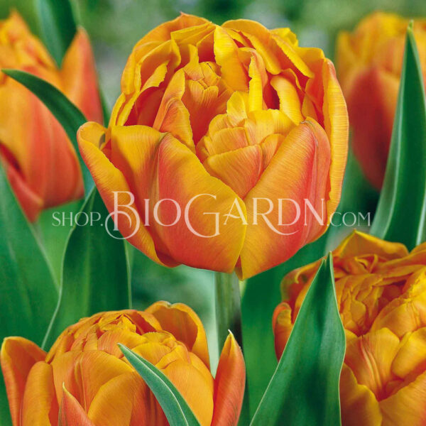 Double Late Tulip Freeman има гигантски цветни глави в красив жълт и оранжев цвят. Freeman е страхотен сорт за Великден.